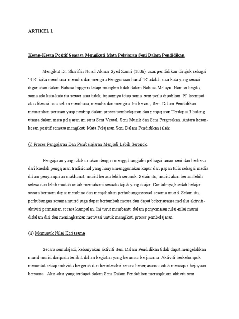 Artikel Seni Dalam Pendidikan Pdf