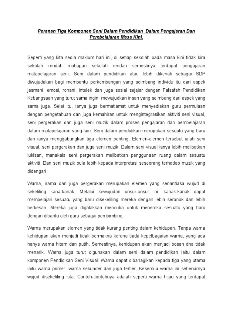 Peranan 3 Komponen Seni Dalam Pendidikan Dalam Pengajaran Dan Pembelajaran Masa Kini Pdf