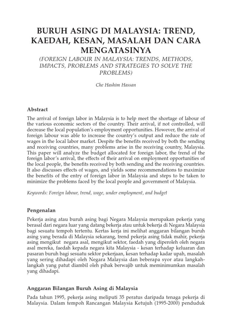 Pdf Impak Kemasukan Buruh Asing Malaysia
