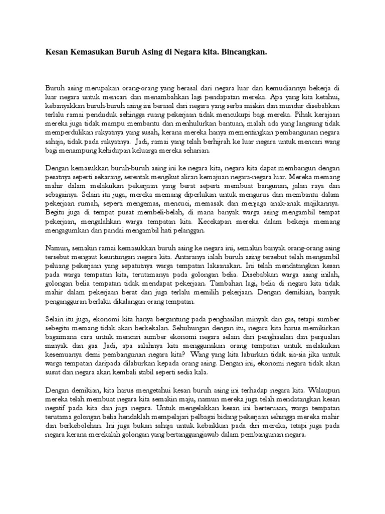 Kesan Kemasukan Buruh Asing Di Negara Kita Pdf
