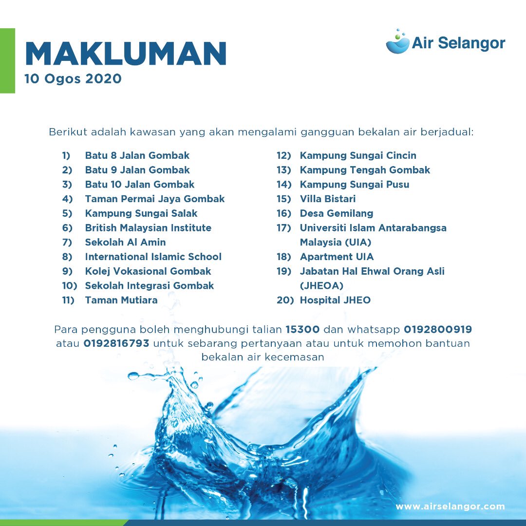 Air Selangor On Twitter Peringatan Simpan Air Secukupnya Hari Ini Gangguan Bekalan Air Berjadual Pada 11 Ogos 2020 Jam 8 30 Pagi Berikutan Kerja Kerja Penggantian Dan Penambahbaikan Aset Kritikal Di Loji Rawatan