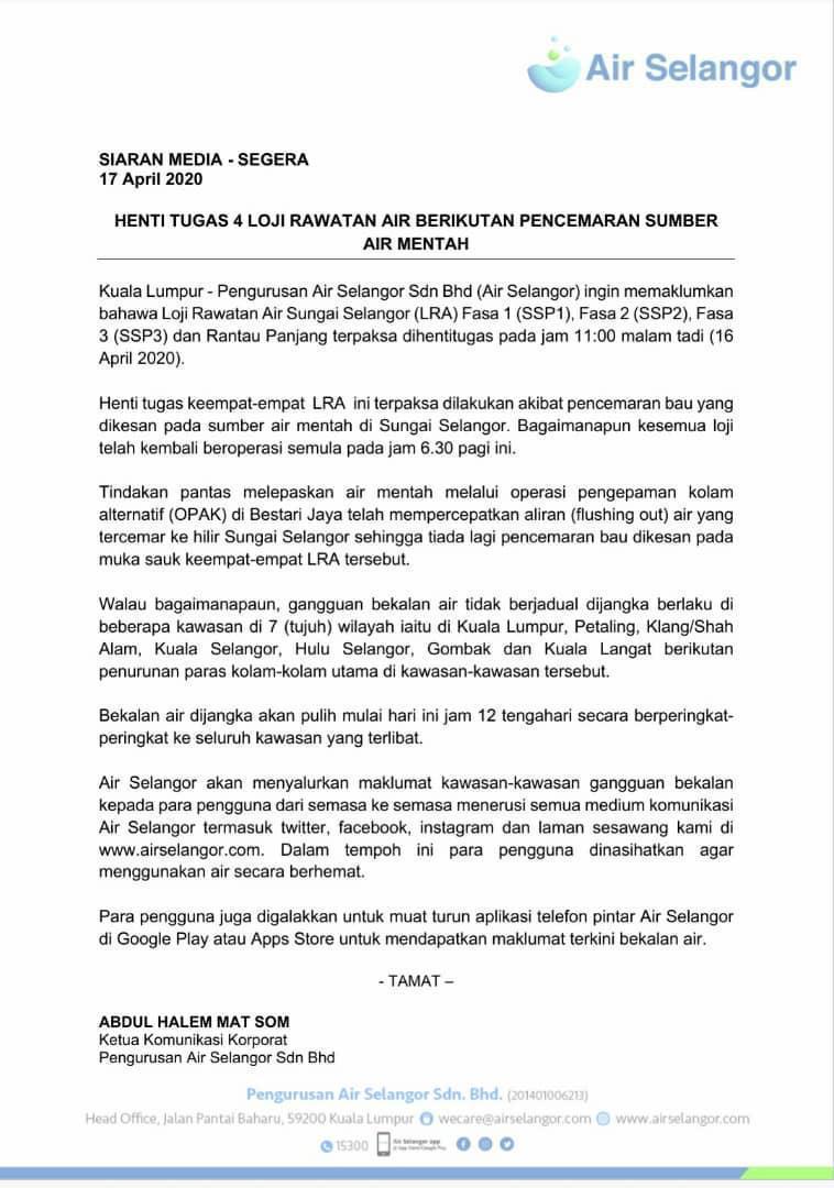 Air Selangor On Twitter Maklumat Terkini Gangguan Bekalan Air Tidak Berjadual Di 7 Wilayah Berikutan Pencemaran Sumber Air Mentah Maklumat Gangguan Bekalan Air Tidak Berjadual Akan Dikemaskini Dari Semasa Ke Semasa Di