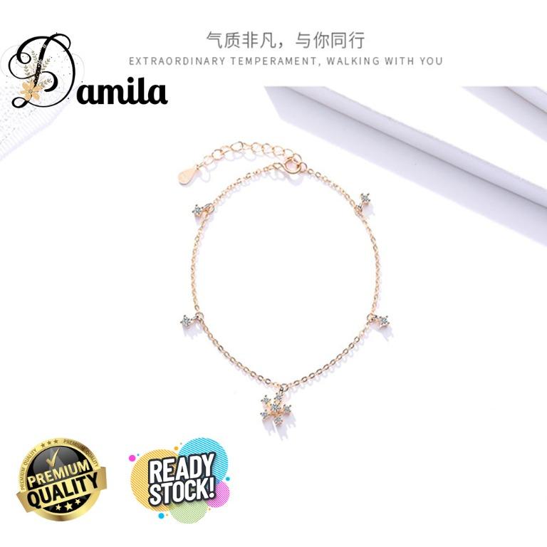 Damila D438b Bracelet Gelang Tangan S925 Silver Rose Gold Korea Design Snowflakes S925纯银腕饰时尚百搭锆石微镶雪花手链女 Women S Fashion Jewellery On Carousell