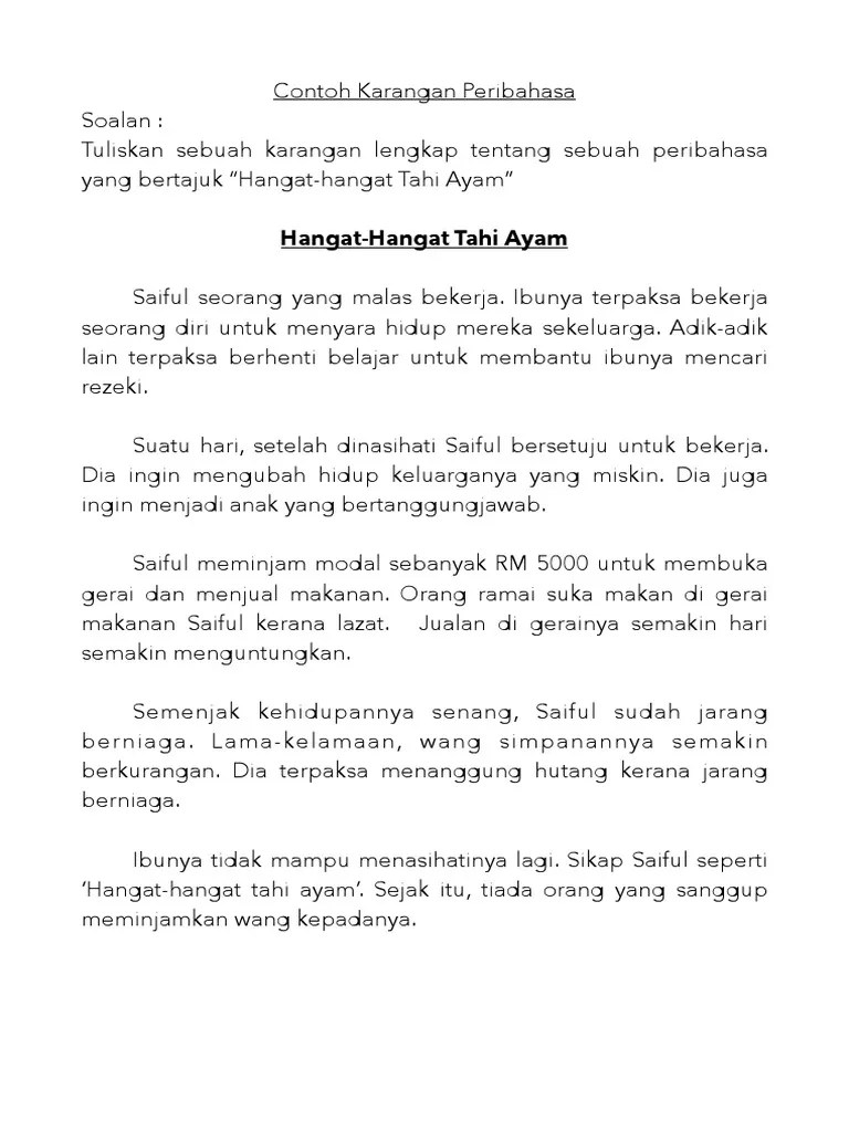 Karangan Contoh 19 - Karangan Peribahasa Penceritaan P eribahasa. Karangan Peribahasacerita -Hangat-hangat tahi ayam Format Ceramah Ciri-ciri Pelajar Cemerlang Semoga senarai tajuk karangan PT3 2019 ini dapat anda.