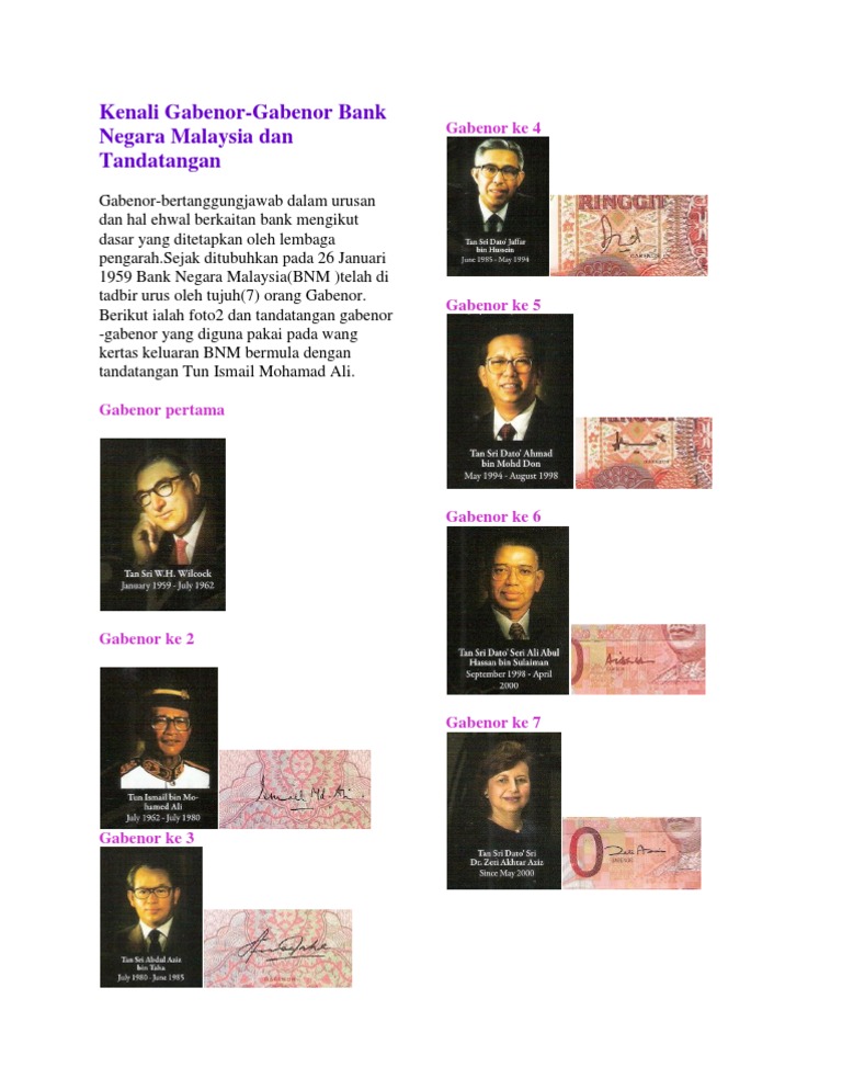 Gabenor bank negara malaysia pertama. Sheikh Muszaphar Shukor Sheikh Mustapha telah berjaya mengharumkan nama Malaysia di pentas dunia. Buy Shift to right Malaysia 6th Series 50 Ringgi AEF staple hole in KuantanMalaysia. Ketua Delegasi Malaysia ke PBB tentang alam sekitar dan pembangunan UNCED Rio de Janeiro 1992.