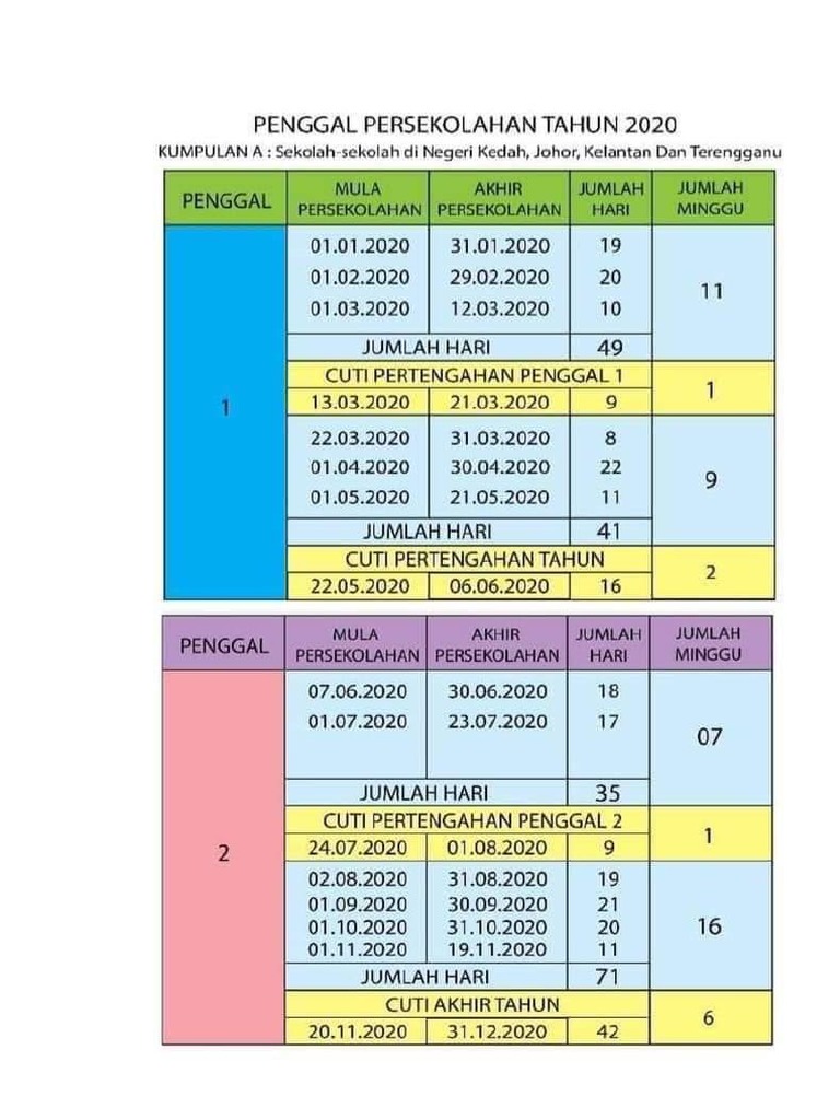 DI SINI halaman seterusnya. Cuti Pertengahan Penggal satu. Kementerian Pendidikan Malaysia KPM melakukan pindaan Takwim Penggal Persekolahan Tahun 2020 bagi membantu pihak sekolah membuat perancangan pengajaran dan pembelajaran murid.